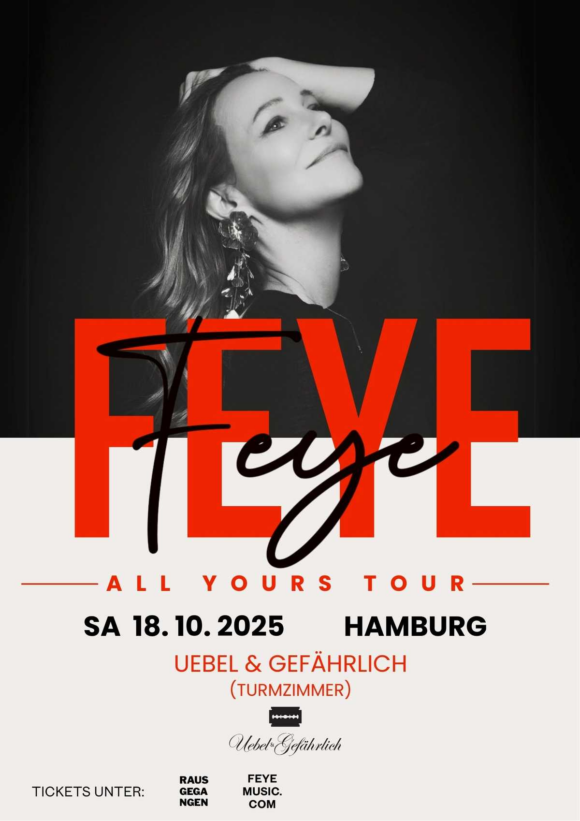 Feye bringt 2025 ihre All Yours Tour auf die Bühne – und lädt ihr Publikum mit ihren Headline-Shows zu einer Reise ein, die weit über Musik hinausgeht. Die Indie-Pop-Künstlerin aus Düsseldorf verbindet in ihrem Sound auf einzigartige Weise verschiedene Elemente: emotionales Storytelling, organische Instrumente und elektronische Texturen – ein Stil, den sie selbst „emPower Pop“ nennt.