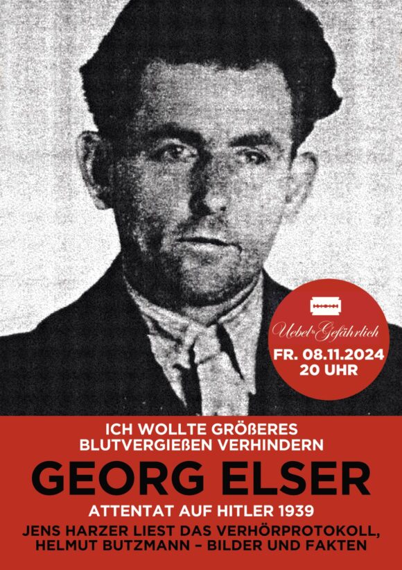 Georg Elser ist in Hamburg nicht mehr unbekannt. Seit fünfzehn Jahren machen Jens Harzer und Helmut Butzmann am 8.11., 1939 Tag des Attentats, diesen dokumentarischen Abend. Wie eine Art „mobiles Denkmal“ wird es am 8.11. jeden Jahres errichtet. Es gibt inzwischen in Hamburg einen Georg-Elser-Platz und auf dem Dach des Bunkers Feldstraße heißt ein Saal nach Georg Elser. Auch im Elser-Museum in Königsbronn tauchen immer wieder Hamburger auf, die Elser und seine Geschichte kennen.