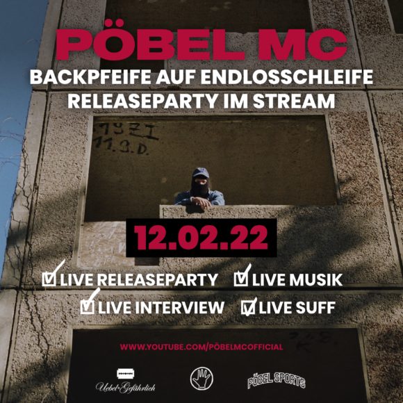 Aber nicht verzagen! Ein besonderer Abend am Tag nach dem Release von „Backpfeife auf Endlosschleife“ soll es aber dennoch werden und Pöblos schmeißt gemeinsam mit dem Uebel & Gefährlich eine kleine Releaseparty im Internet mit Suff und gude Laune!