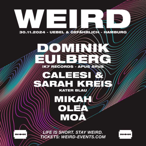 What an incredible year it’s been! To top it all off, we’ve put together one final, mind-blowing lineup for you as we celebrate the WEIRD Takeover at Uebel & Gefährlich. None other than Dominik Eulberg will be headlining the night, bringing his signature sound that fuses the beauty of nature with electronic music, delivering high-energy sets you won’t forget anytime soon. Joining him are Berlin’s finest, Caleesi and Sarah Kreis, who have graced the decks of Kater Blau and the hottest festivals around the globe. Rounding off the lineup are Hamburg’s very own Mikah, Olea, and Moå. This is one you don’t want to miss!